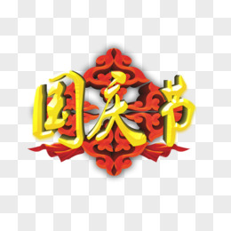 国庆节金色花体字红色花纹