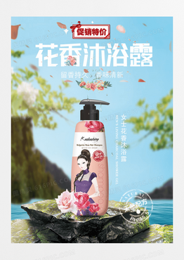 女士花香沐浴露促销活动海报