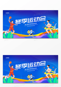 蓝色插画冬季运动青春无限冬天冬季滑雪宣传展板冬天运动会