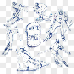 手绘可爱动物驯鹿拉雪橇滑雪素材