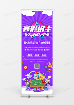 紫色简约寒假班招生火热进行中教育培训招生展架