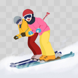 手绘冬奥会自由滑雪双板滑雪免抠元素