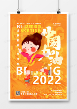 黄色简约花样滑冰为中国加油冬奥会系列海报