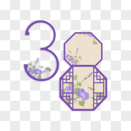 紫色典雅三八节女神节花卉牵牛花古典艺术字