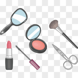 矢量手绘化妆品腮红镜子睫毛膏和口红