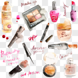 小清新 唯美 手绘 水彩 化妆品 女人