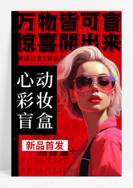 红色简约插画万物皆可盲化妆品宣传海报