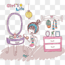 卡通手绘小清新少女化妆免抠元素