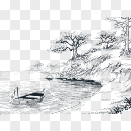 船只房屋画作素材