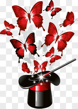魔术帽飞舞红色蝴蝶