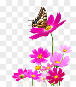 手绘路边栅栏花卉蝴蝶免抠装饰元素