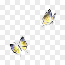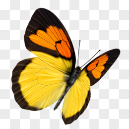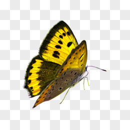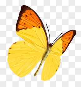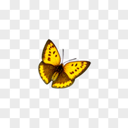 3D卡通黄色树叶上的可爱蝴蝶免抠元素