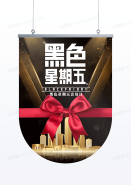 时尚黑金大气黑色星期五蝴蝶结会员日促销吊旗