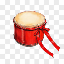 儿童插画红色鼓和蝴蝶结彩带免抠元素