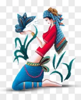 卡通手绘免抠女孩和小狗捕蝴蝶元素