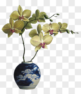 蓝色花瓶中的蝴蝶兰