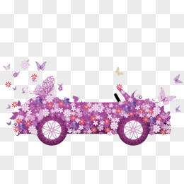 矢量紫色蝴蝶花朵敞篷跑车扁平车