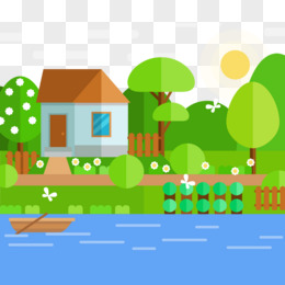 扁平化河边春季风景矢量素材