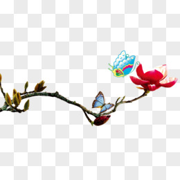 鲜花海报背景鲜花背景素材 卡通手绘花枝蝴蝶