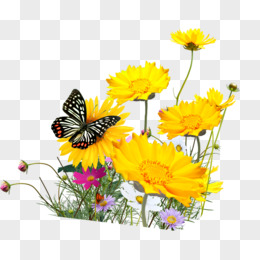 黄色鲜花美景蝴蝶