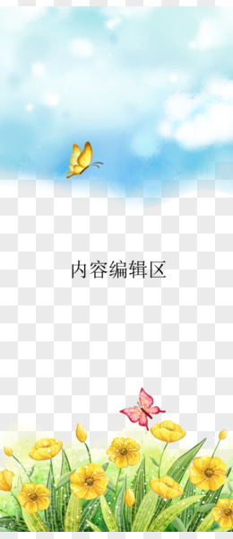 鲜花草地蝴蝶纸张背景