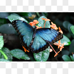 鲜花上的蓝色蝴蝶