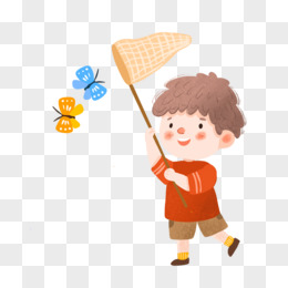 手绘卡通儿童外出抓蝴蝶免抠素材