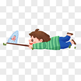 卡通手绘免抠男孩趴在地上扑蝴蝶素材