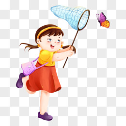 卡通手绘免抠扑蝴蝶的小女孩素材