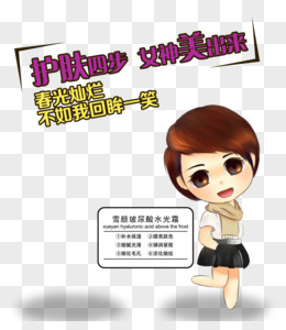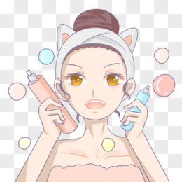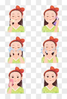 一组手绘插画风可爱女生卸妆敷脸护肤套图元素