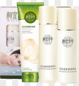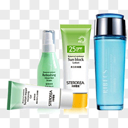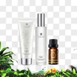 手绘绿色淡雅花卉防晒霜护肤品元素