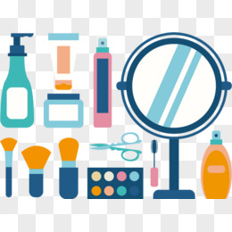 矢量卡通乳液镜子眉剪粉盒