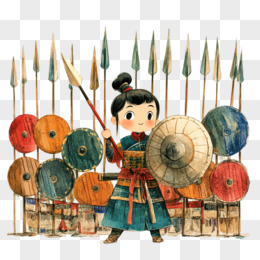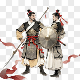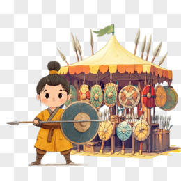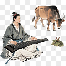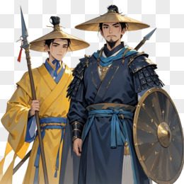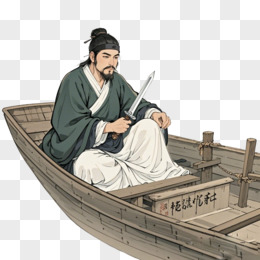 穿着古代服饰的男人坐在小木船上拿着匕首在船边上刻字的免抠元素