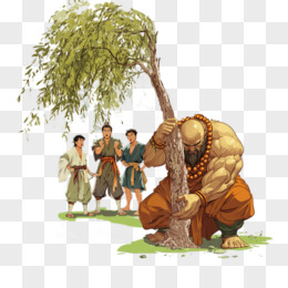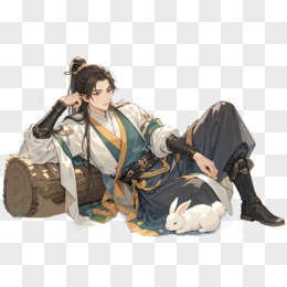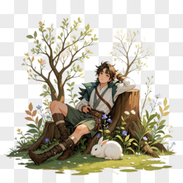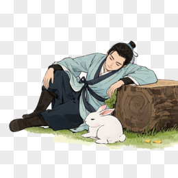穿着古代服饰的男人躺在树桩下的免抠元素