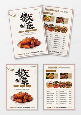 浅色徽菜餐饮美食店私房菜宣传单页菜单