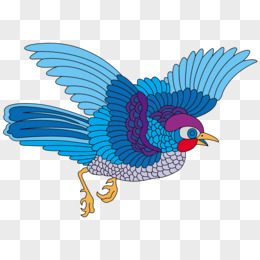 矢量漂亮蓝色羽毛传统绘画飞鸟