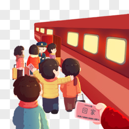 卡通手绘学生新年排队进站回家过春节免抠元素