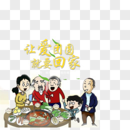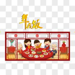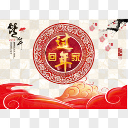 手绘红色剪纸免抠一家人冬季回家过年素材