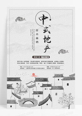 中国风徽派建筑中式地产宣传海报