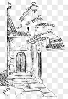 手绘徽派建筑免抠元素