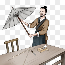 手绘水彩风鲁班造伞场景素材