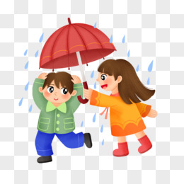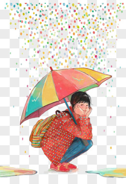手绘男生拿伞遮雨