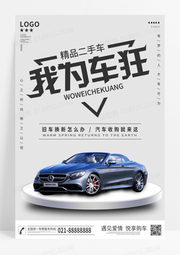 灰色简约风汽车促销二手车置换收购海报二手车海报