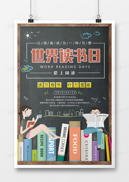 手绘插画风世界读书日简约海报