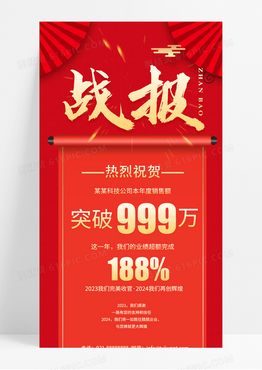 红色战鼓卷轴中国风年底总结业绩汇总战报ui手机长图海报