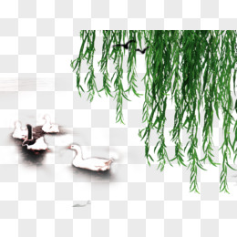 手绘水彩春天垂柳大雁与小船免抠元素