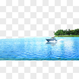 卡通手绘湖面上的船只元素