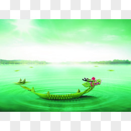 绿色端午节龙舟海报背景湖面