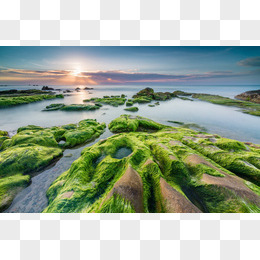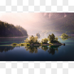 天空太阳光光效绿色岛屿湖面