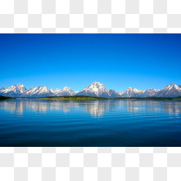 蓝色天空湖面雪山